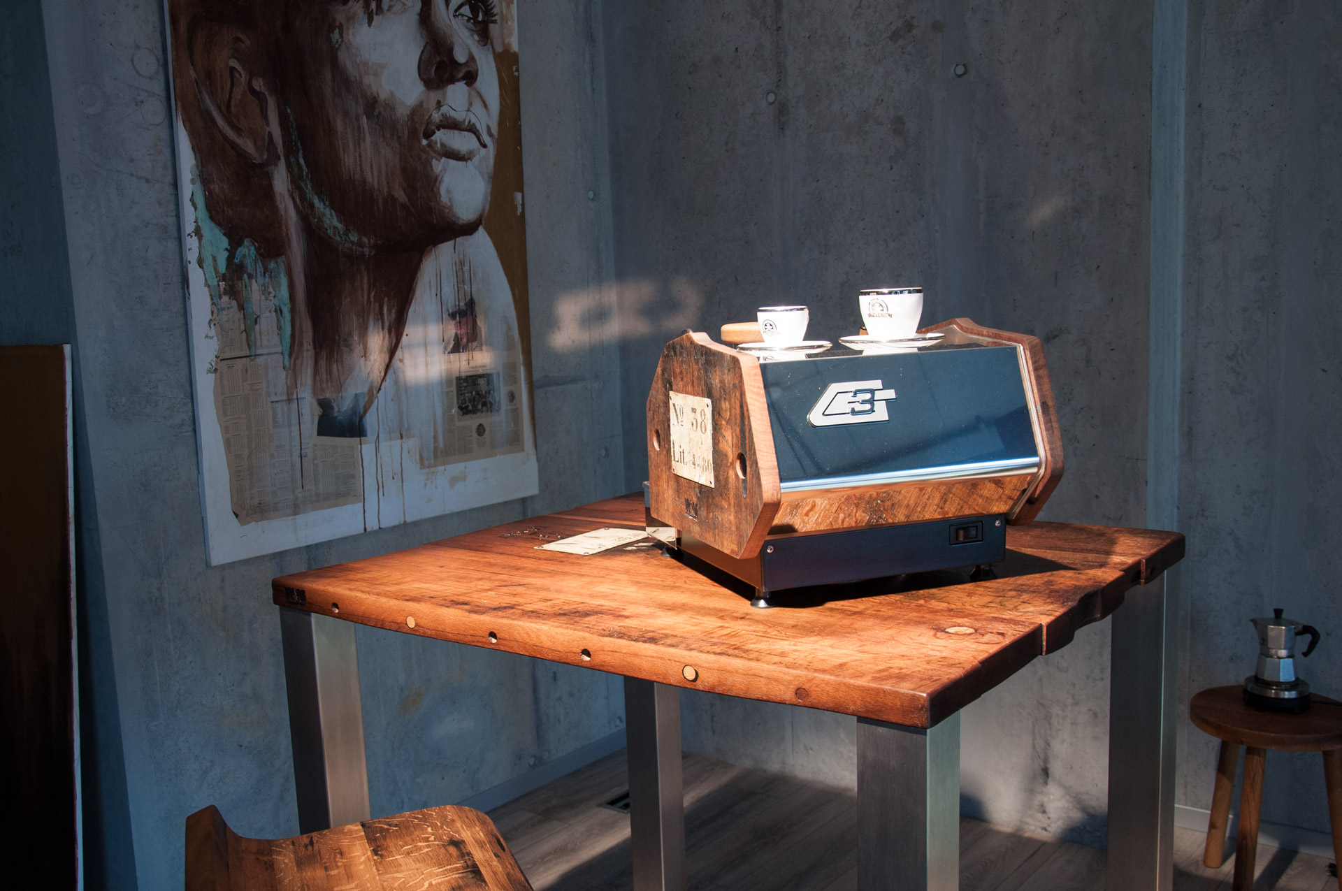 Ab dem Mittwoch 09. Dezember 2020 können Sie eine Auswahl an unseren Werken in der PopUP Artgallery im Aeschbachquartier in Aarau bestaunen. Unter der Leitung von "LePedaleur" und dem Moto #KUNSTGENUSS ist eine schöne Mischung aus Kunstwerken von Marcel Wagner - Master Coffee und den Möbel vom Fasstischmacher entstanden. Zum exklusiven Detail dieser Gallery zählt die Kaffeemaschine von Sigi Le Pedaleur. Die La Marzocco hat Seitenpanelen, die aus einem Fass vom Markgräflerhof in Basel (ehem. Bürgerspital) gefertigt wurden. Das Fass hatte den stolzen Jahrgang 1823.