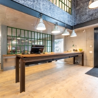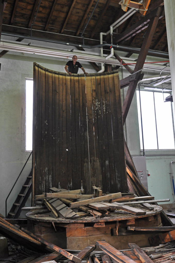 Die Verkaufstheke (Tisch Nr. 204) besteht ebenfalls aus Fassdauben des Riesenfasses, diesmal sind die Dauben aber an einem Stück (4.6 Meter!).
