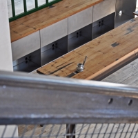 Im Hobbyhaus der Familie Suter gibt es in der Mitte eine Treppe aus Fasssholz und Stahl. Die Tritte stammen von der 41'000 Liter Stande der Elsa Estavayer Lait SA (Fass Nr. 210), der Handlauf von alten Schienen der Rigi-Bahn, was natürlich kein Zufall ist, denn die Suters sind auf Modelleisenbahnen spezialisiert.