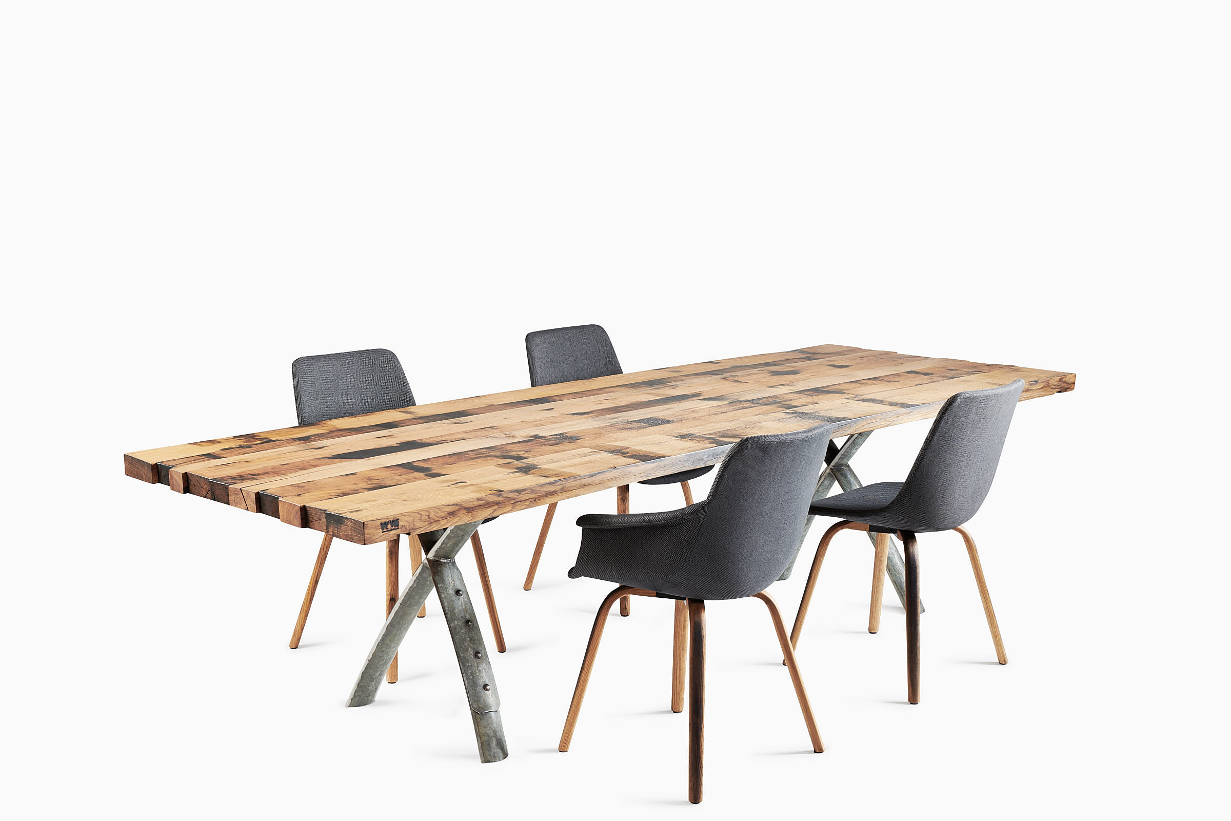 Mit viel Freude dürfen wir unseren neuen Stuhl vorstellen. Die Füsse vom Stuhl sind aus Fassdauben. Aber diesmal haben wir die Dauben nicht gerade gebogen, sondern in eine ganz neue Richtung. Einzigartig!
