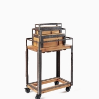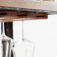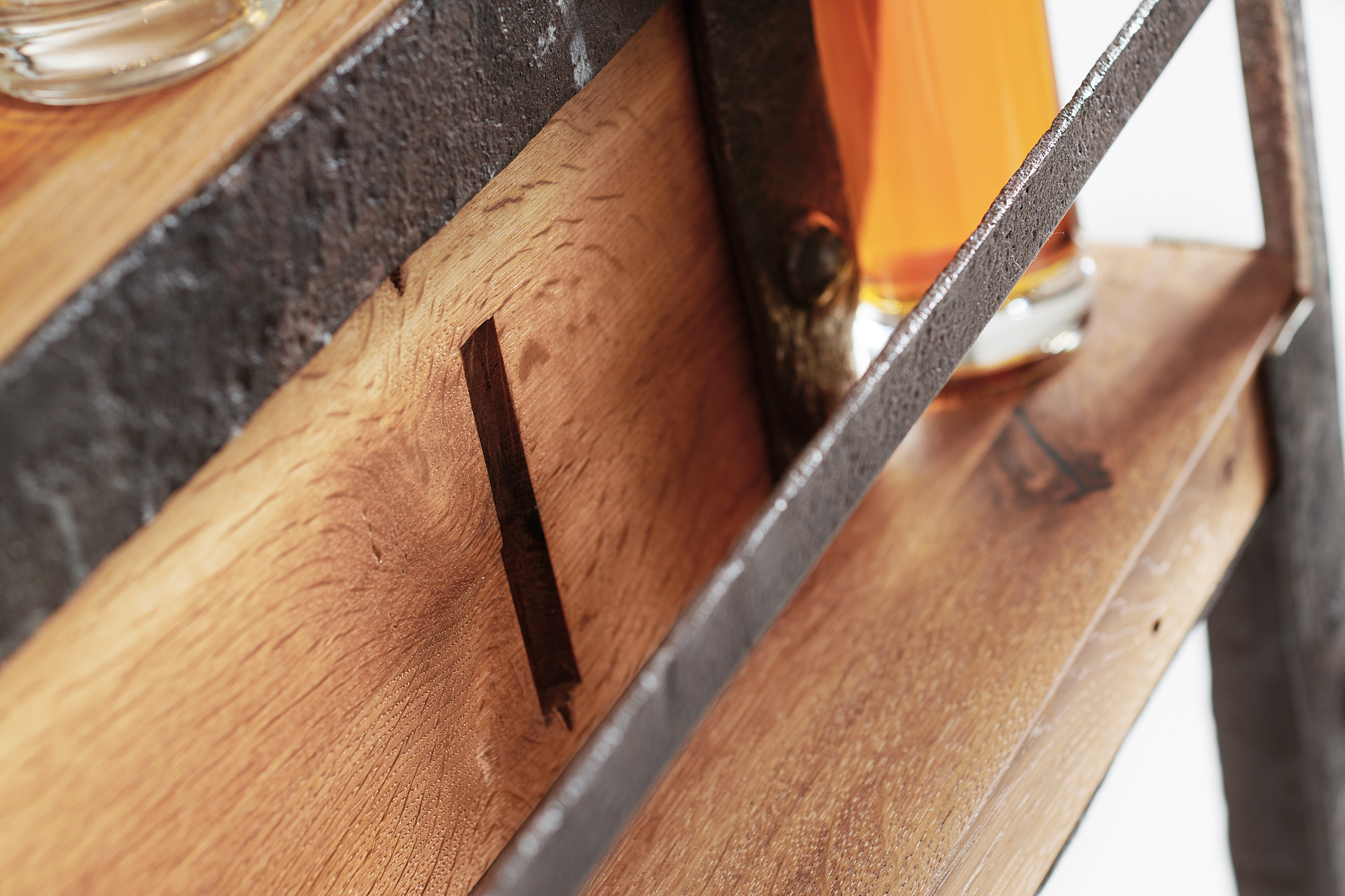 Unser Servierwagen eignet sich für den öffentlichen wie auch privaten Raum und wird aus Fassholz und Fassreifen gefertigt. Dabei sind Äste, kleine Risse, Holzspiegelungen oder weinrote Verfärbungen sichtbar. Unterseitig gibt es eine Glashalterung.