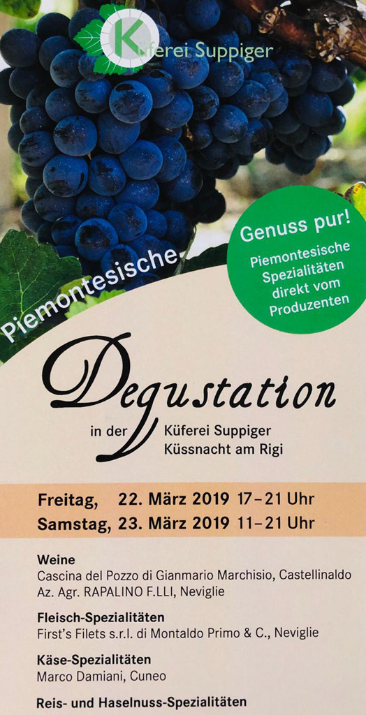 Freitag + Samstag, 22. + 23. März 2019 piemontesische Degustation in der Küferei Suppiger in Küssnacht.