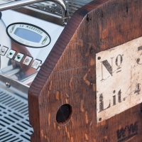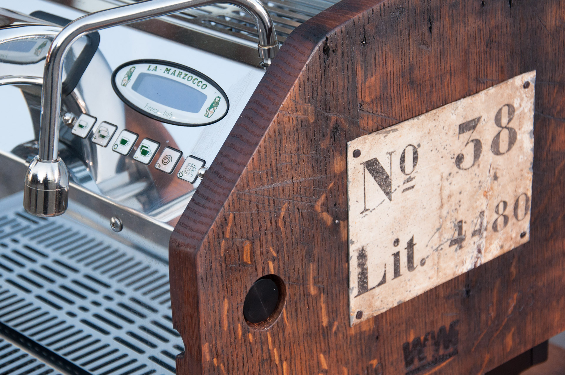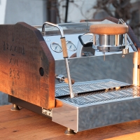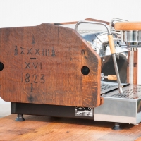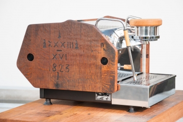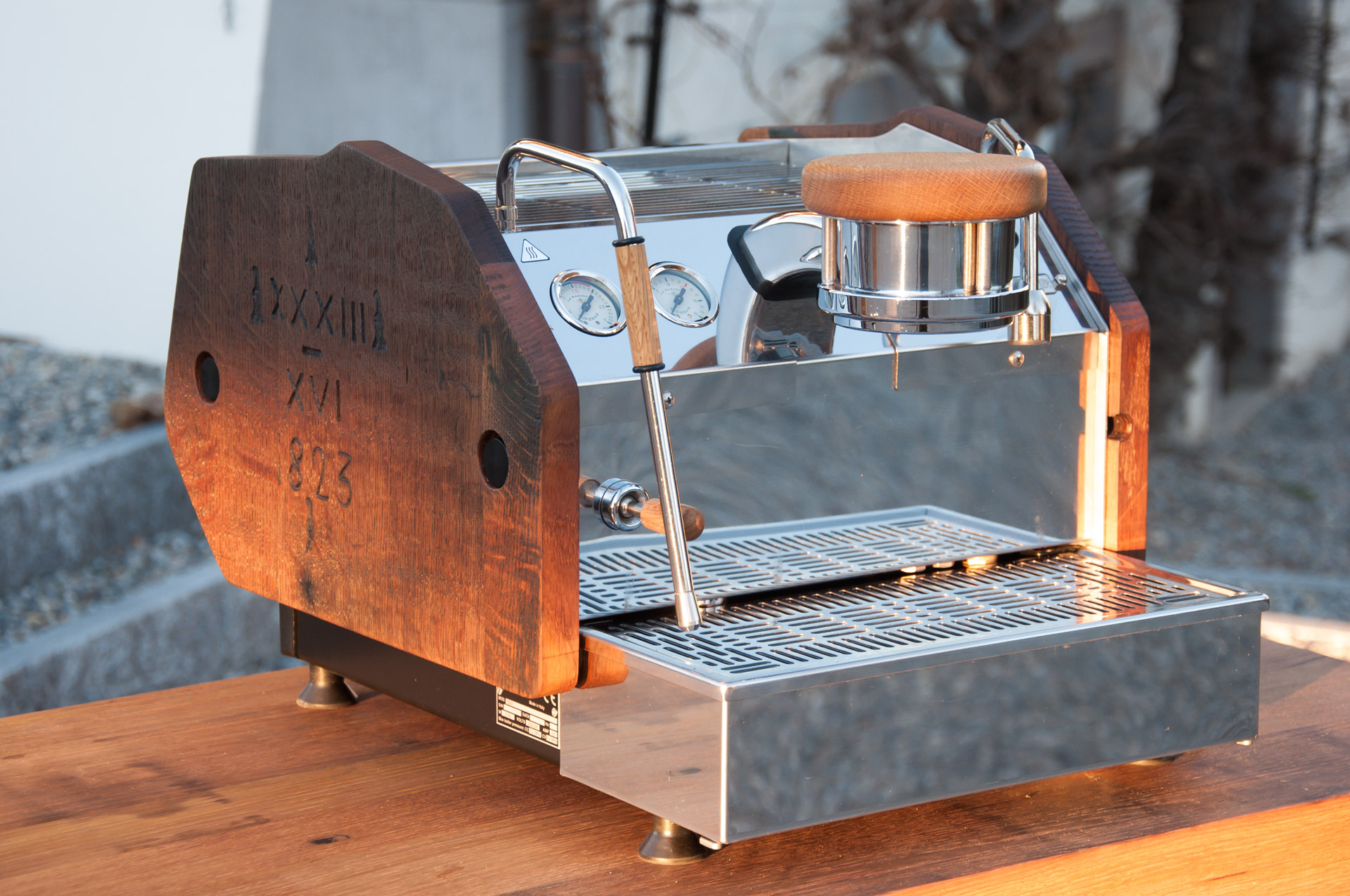 Vom Kaffee beschwingt - vom Holz fassziniert! In Zukunft serviert ihnen LE PEDALEUR einen Spitzenkaffee aus dieser "La Marzocco"