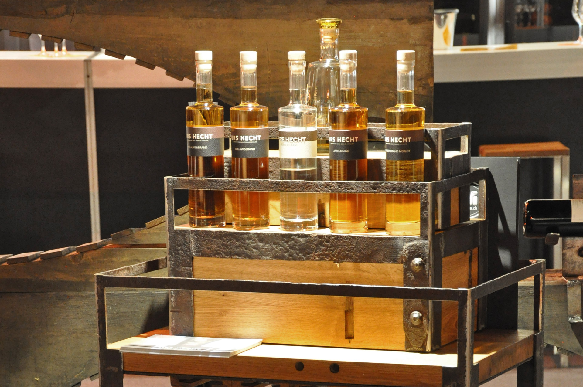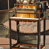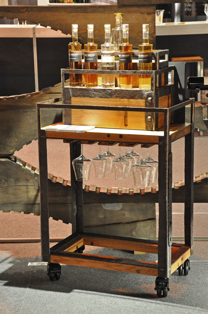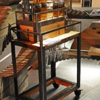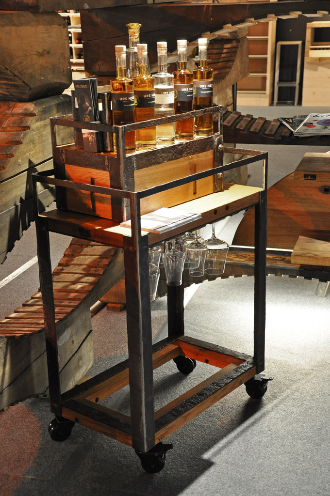 Gestell rostige Fassreifen geschmiedet, fahrbar,