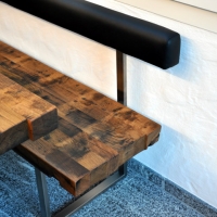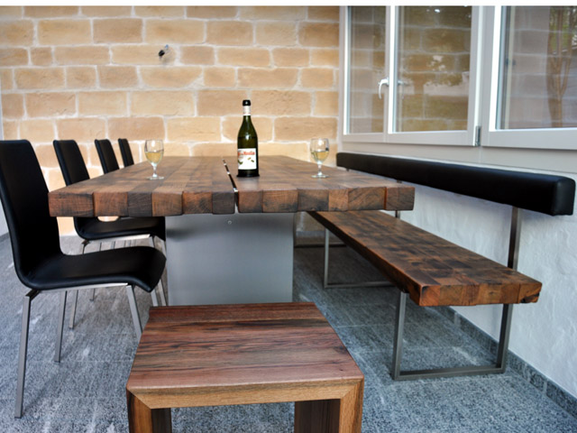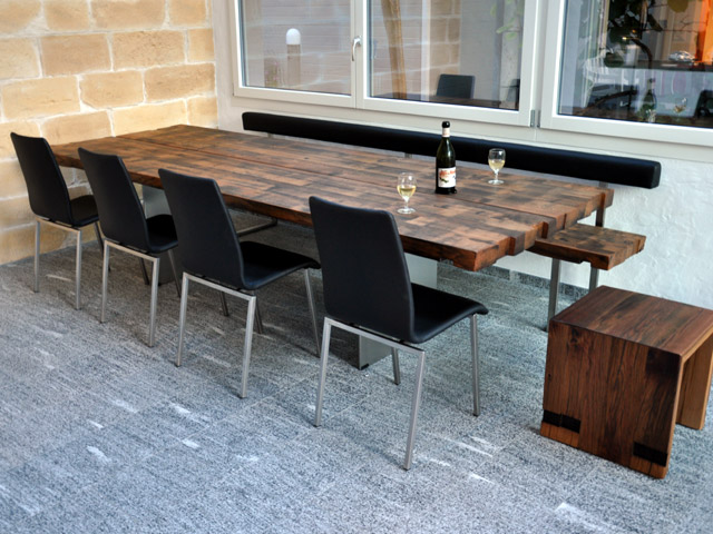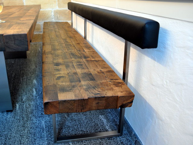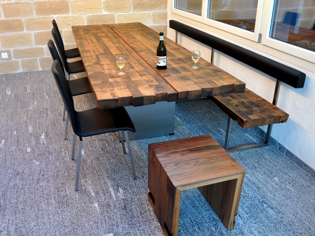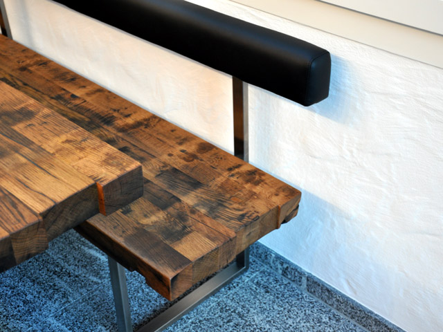 Oberfläche leicht gewellt, eichengoldig bis dunkel, Äste, Risse, Spiegel,