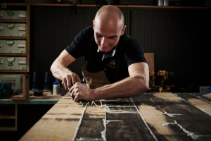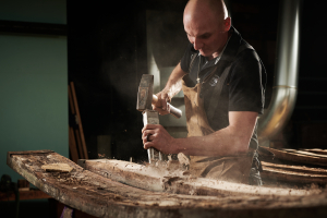 Ob man aus dem würdig gealterten und krummen Holz etwas Neues herstellen könnte? Die Idee liess Walter Amrhyn nicht mehr los. Um das Holz in eine moderne Form zu bringen, versuchte er die Fassdauben mit Hilfe von Wasserdampf gerade zu biegen. Mit Erfolg!