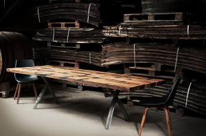 Mittlerweile biegen wir krumme, alte Fassdauben in ganz unterschiedliche Richtungen und erfüllen damit individuelle Möbelwünsche. Das von alten Fässern stammende Holz macht durch seine Eigenschaften jedes Möbel zu einem Unikat mit Spuren der Vergangenheit.