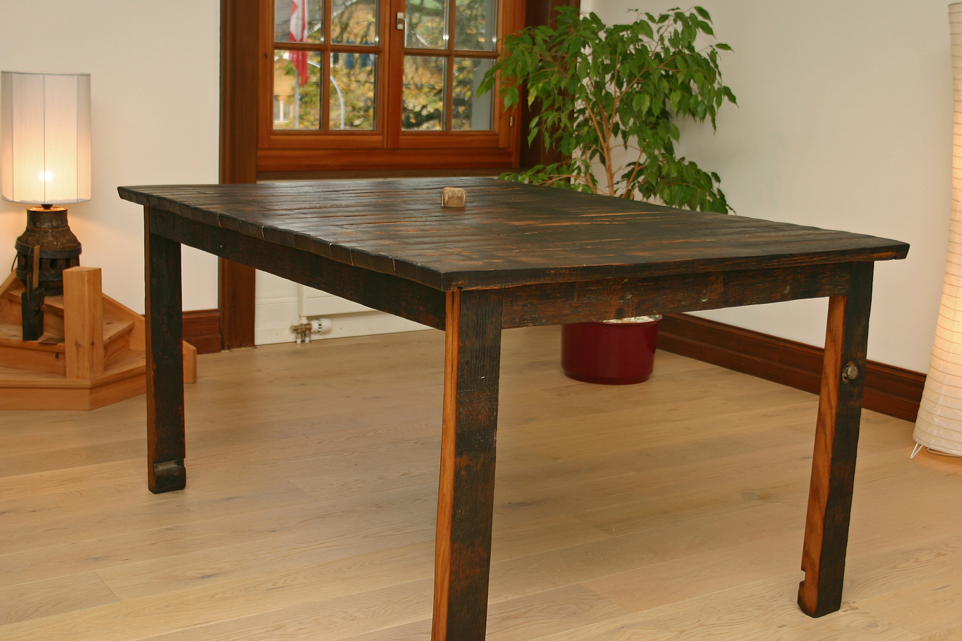 Als 2007 die Renovationsarbeiten vom Schloss Buholz (Elternhaus in Ruswil LU) abgeschlossen waren, fehlte im Eingangsbereich noch ein passendes Schuhregal. Auf der Suche nach geeignetem Material stiess Walter Amrhyn auf ein hinfälliges Fass. Die Oberfläche der alten Brettern berührte den gelernte Zimmermann.