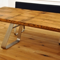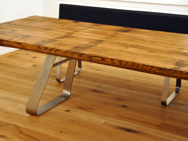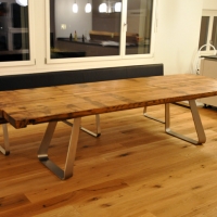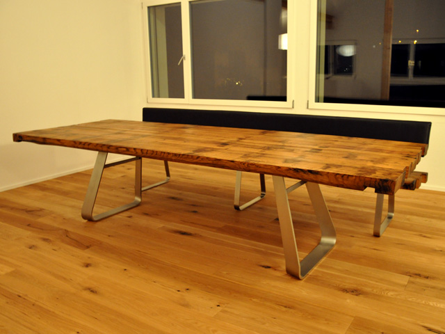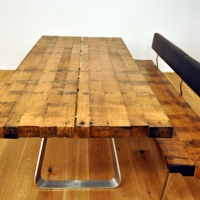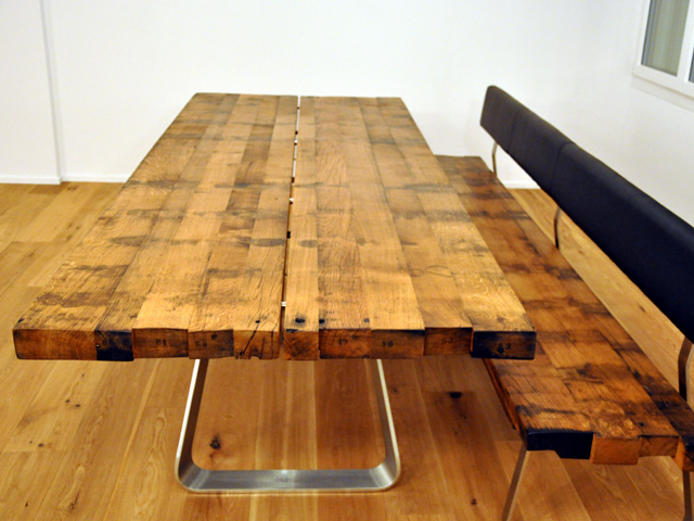 Oberfläche leicht gewellt, eichengoldig bis dunkel, Äste, Risse, Spiegel, Fassreifenabdrücke, Fassaussenseite10 Dauben längs