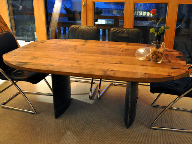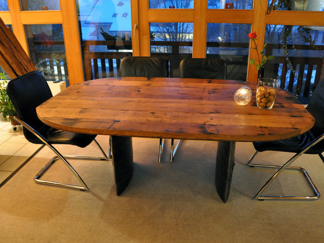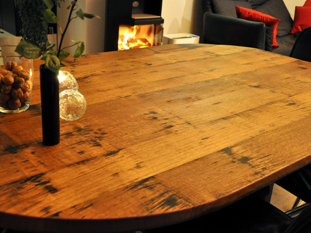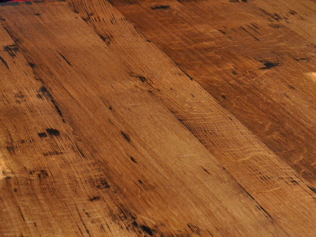 Oberfläche leicht gewellt, eichengoldigbis dunkel, Äste, Risse, Spiegel