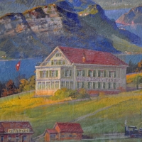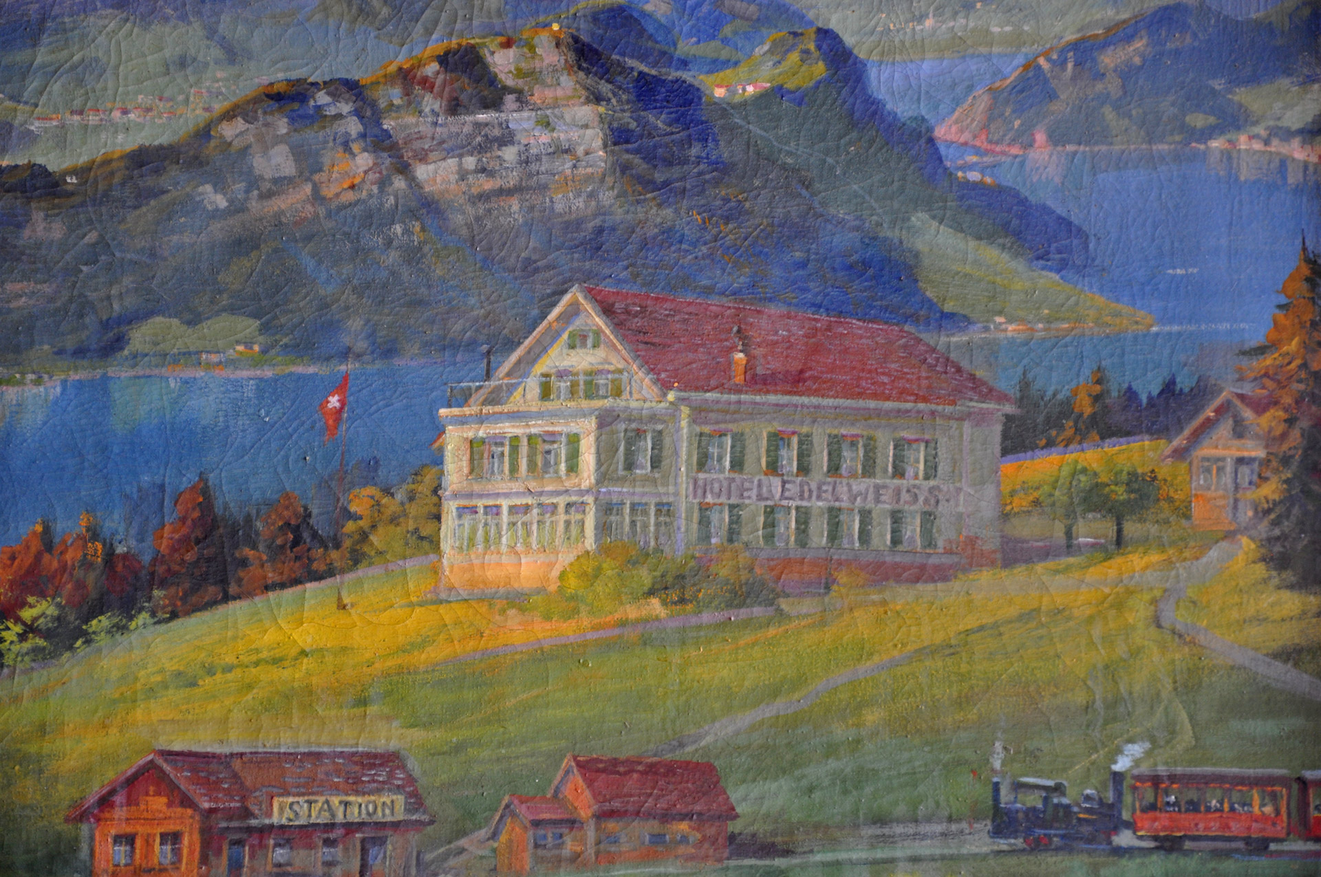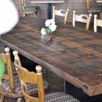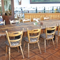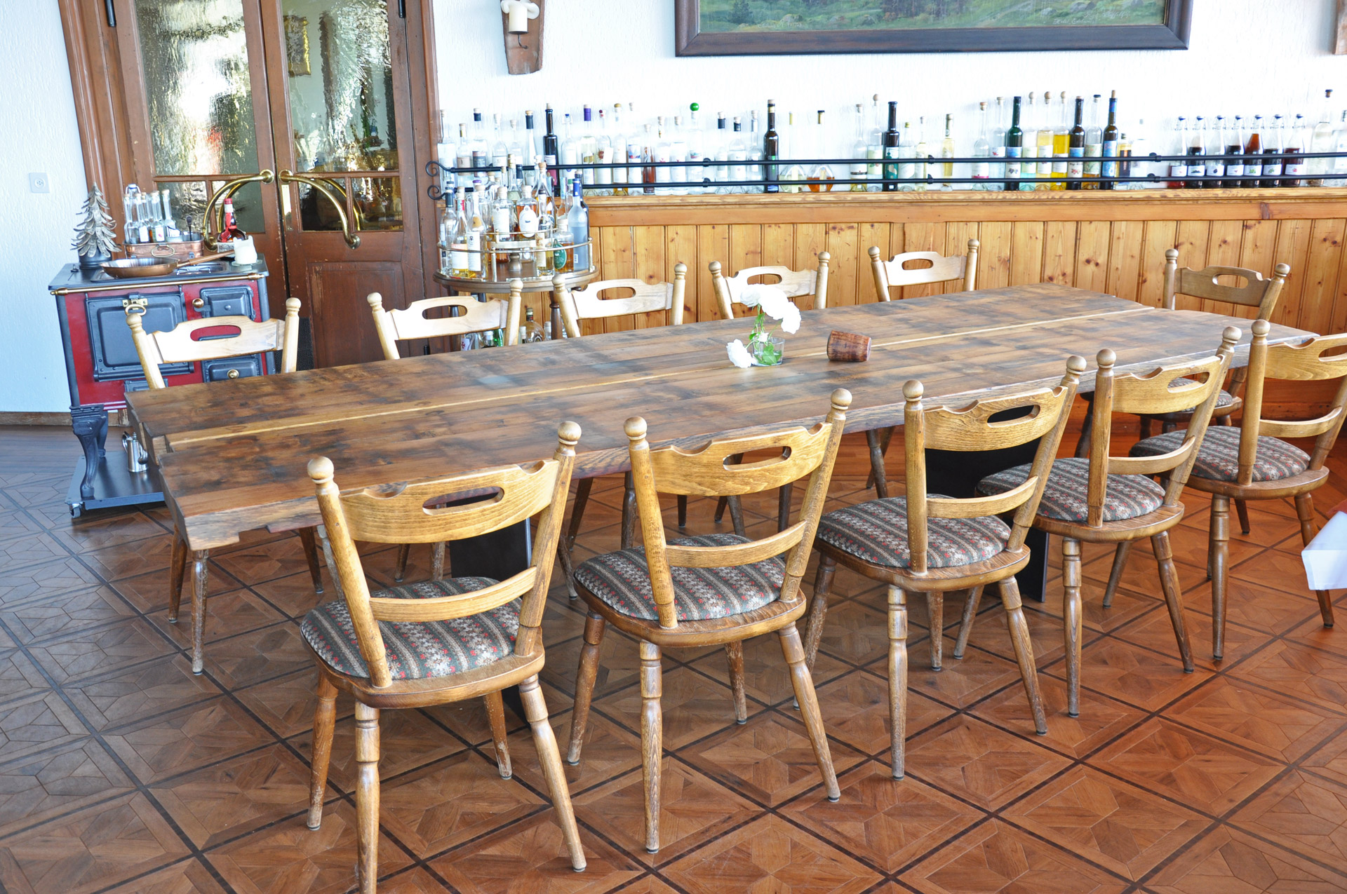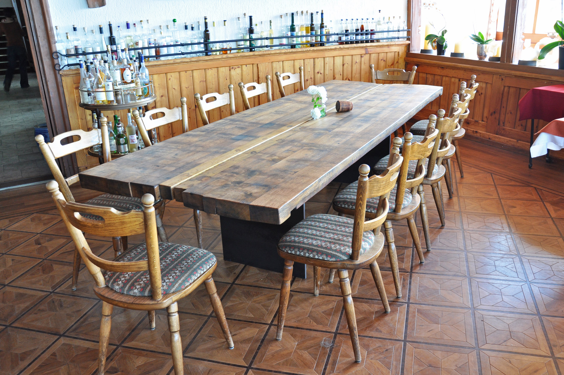 Oberfläche leicht gewellt, eichengoldig bis dunkel, Äste, Risse, Spiegel, alter Dübel, Fassreifenabdrücke, Fassaussenseite, 9 Dauben längs, Mitte Spalt mit Bolzen verbunden, Zapfenloch mit ZapfenBeine Eisenwangen kaltgewalzt