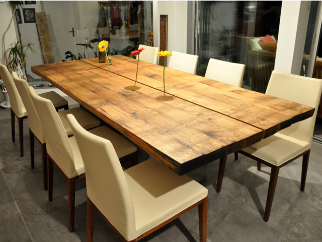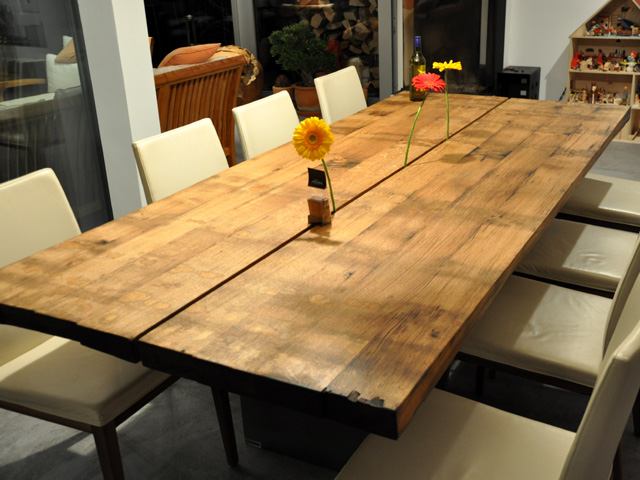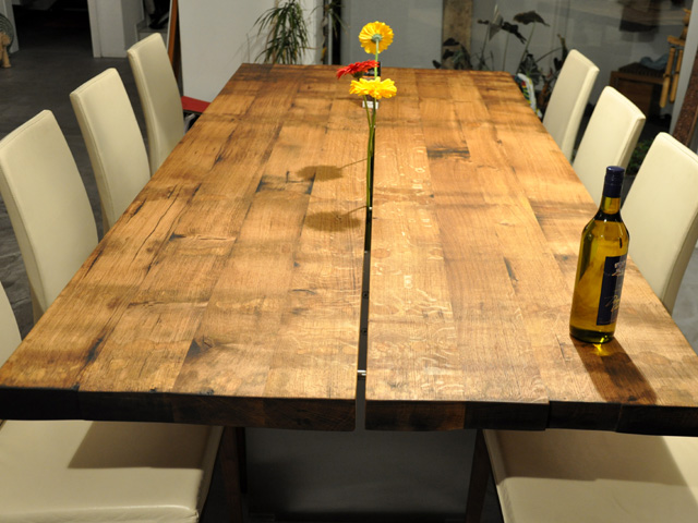 Oberfläche eichengoldig-hell, leicht gewellt, Äste, Risse, Spiegel, FassreifenabdrückeFassaussenseite, 8 Dauben längs